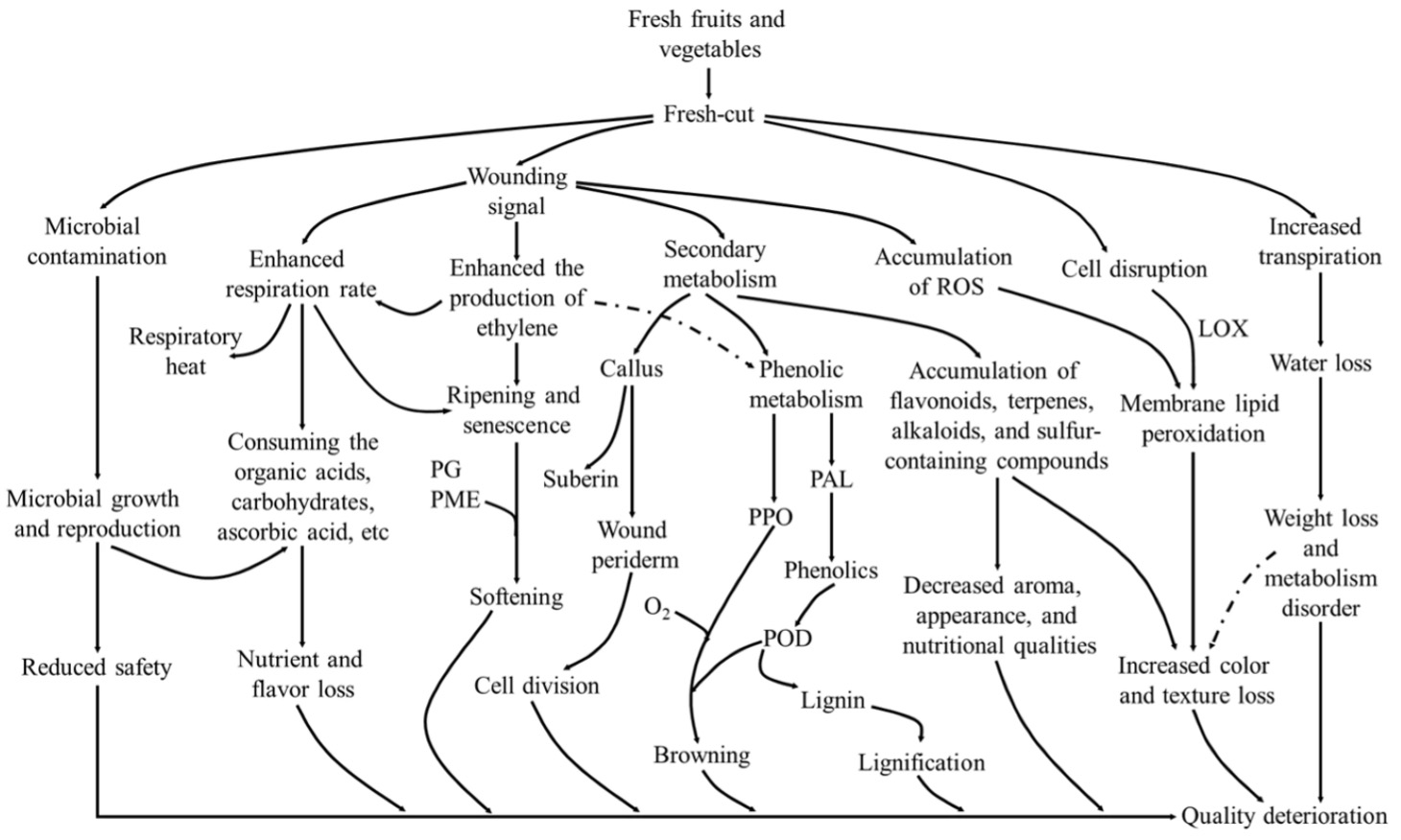 Figure 1. “The reasons for quality deterioration of fresh-cut fruits and vegetables,” Faisal et al. (2024). (Image credits: https://www.mdpi.com/2304-8158/14/16/2769)