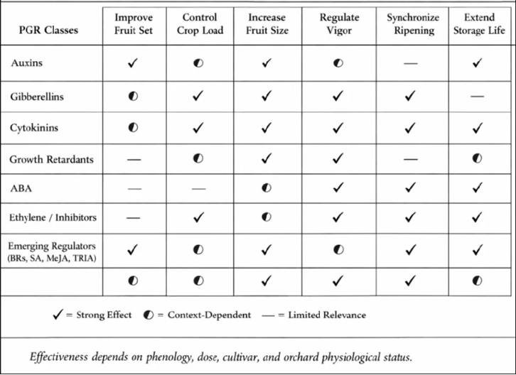 The purposes for which PGRs are used in various fruits can be wide-ranging, especially considering synergistic effects (see Figure 1). So only the main effects of the five major PGR groups are listed below.