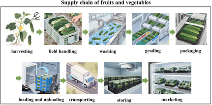Figure 1: The different stages in the supply chain of fresh produce, Liu et al. (2025). (Image credits: https://www.sciencedirect.com/science/article/pii/S0023643825014665)
